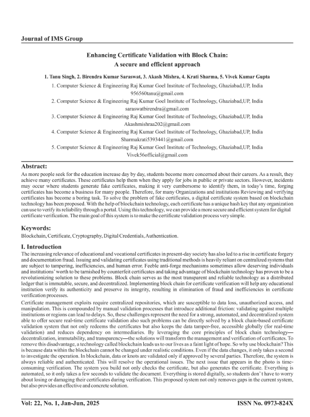 • Enhancing Certificate Validation with Block Chain: A secure and efficient approach