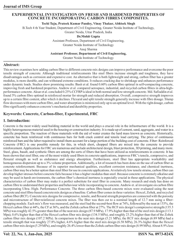 • EXPERIMENTAL INVESTIGATION ON FRESH AND HARDENED PROPERTIES OF CONCRETE INCORPORATING CARBON FIBRES COMPOSITES