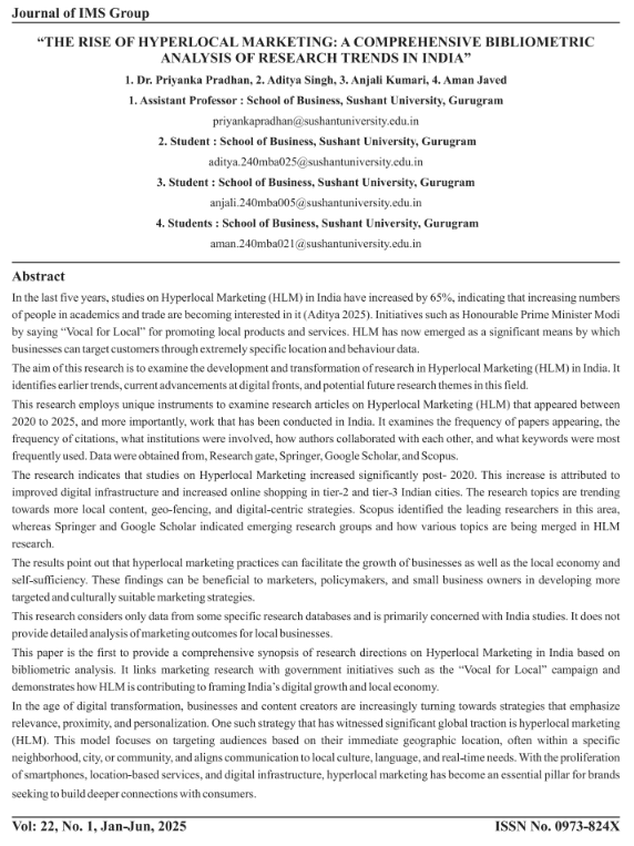 • THE RISE OF HYPERLOCAL MARKETING A COMPREHENSIVE BIBLIOMETRIC ANALYSIS OF RESEARCH TRENDS IN INDIA