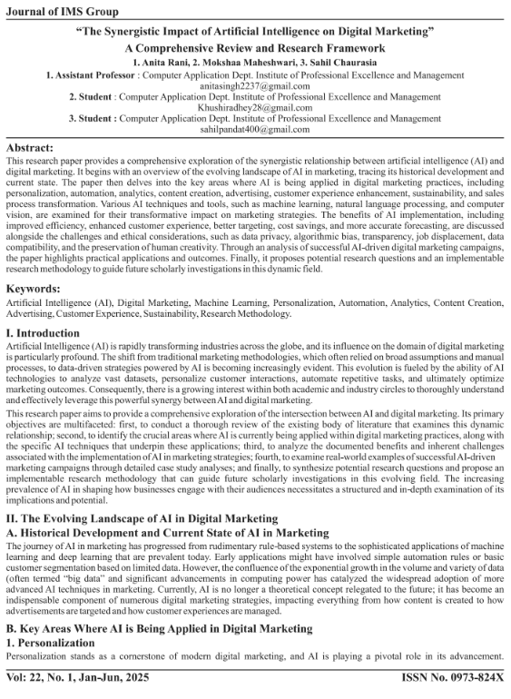 • The Synergistic Impact of Artificial Intelligence on Digital Marketing A Comprehensive Review and Research Framework