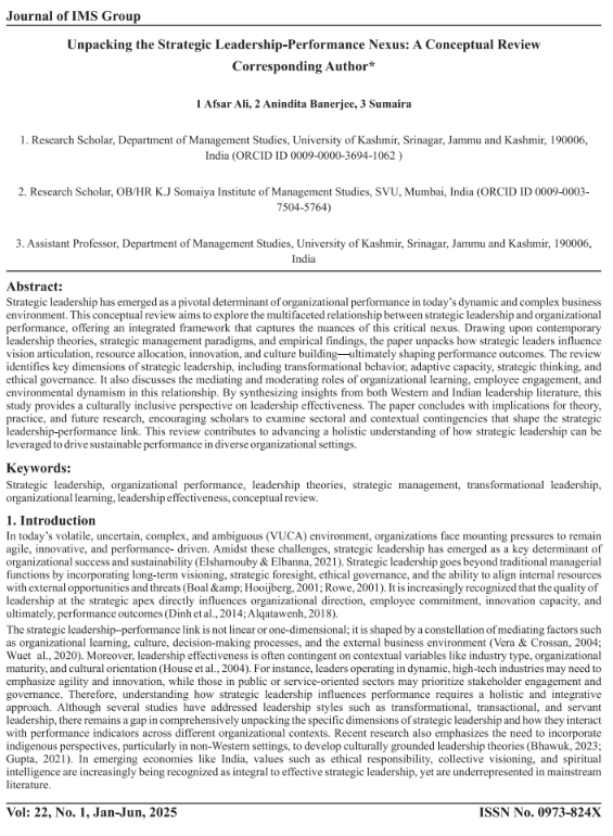 • Unpacking the Strategic Leadership-Performance Nexus: A Conceptual Review Corresponding Author*
